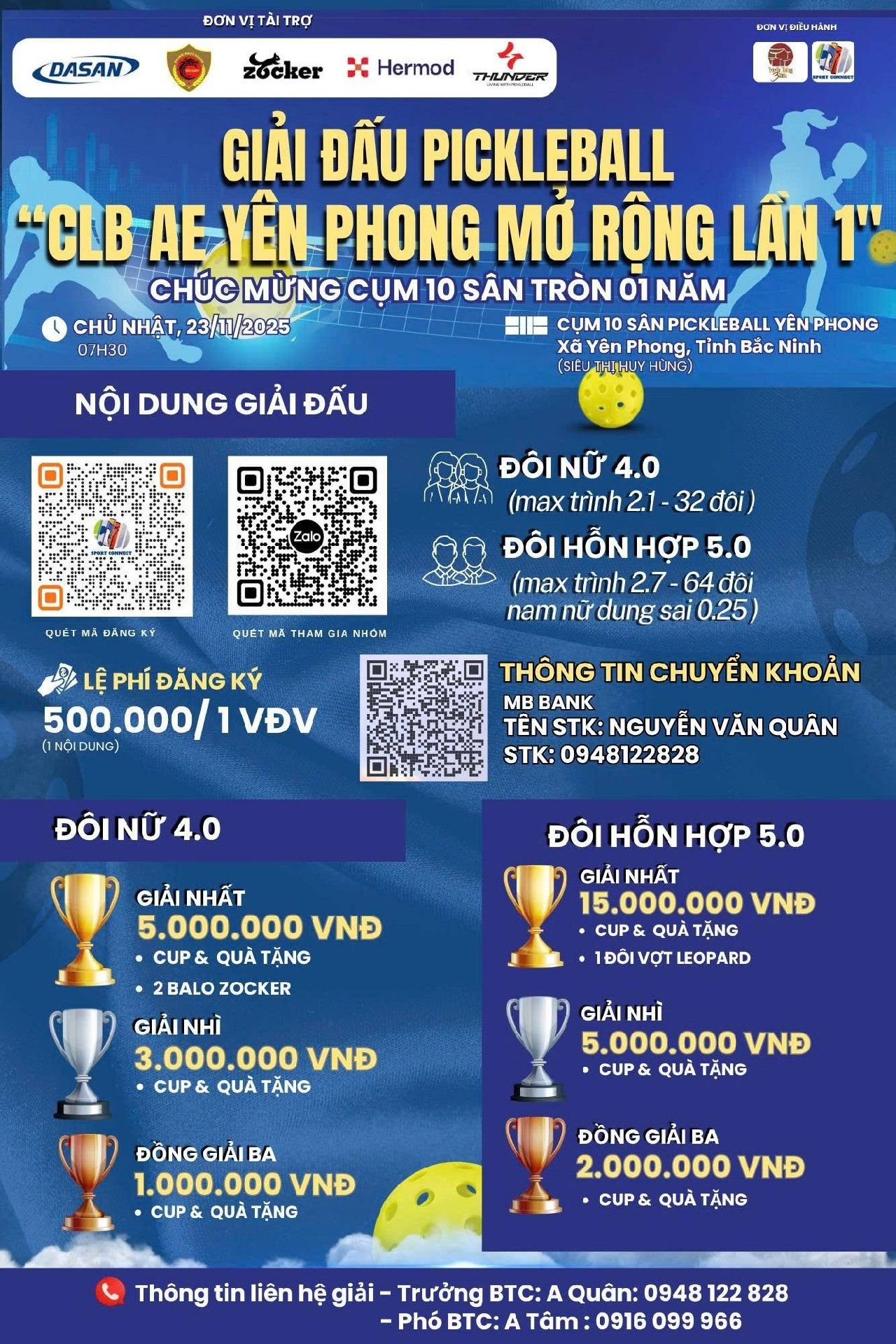 Giải Pickleball Olympus Cup Hạ Long mở rộng lần 1 - ND Đôi nam nữ 5.5