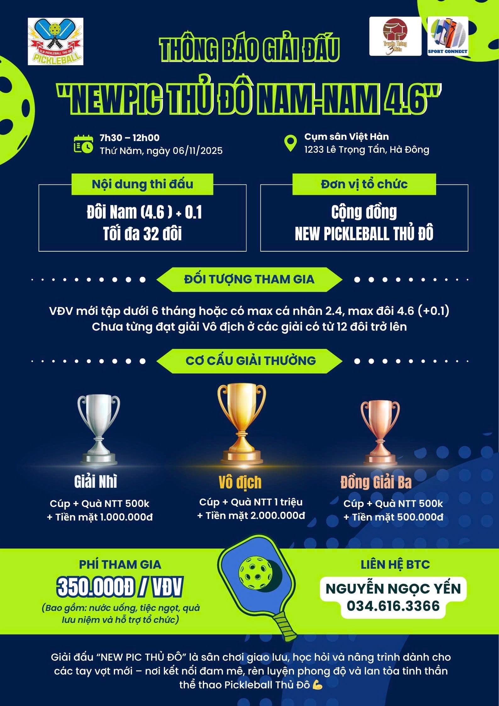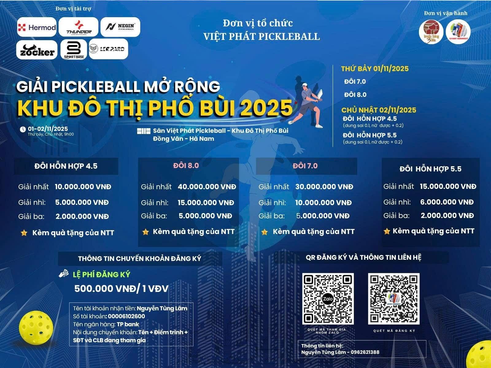 NGÀY MAI TƯƠI SÁNG PICKLEBALL 2025 - NHÓM NỘI DUNG DƯỚI 45 TUỔI (VĐV sinh năm 1980 trở về sau) - Đôi Nam (tối đa 5.0)