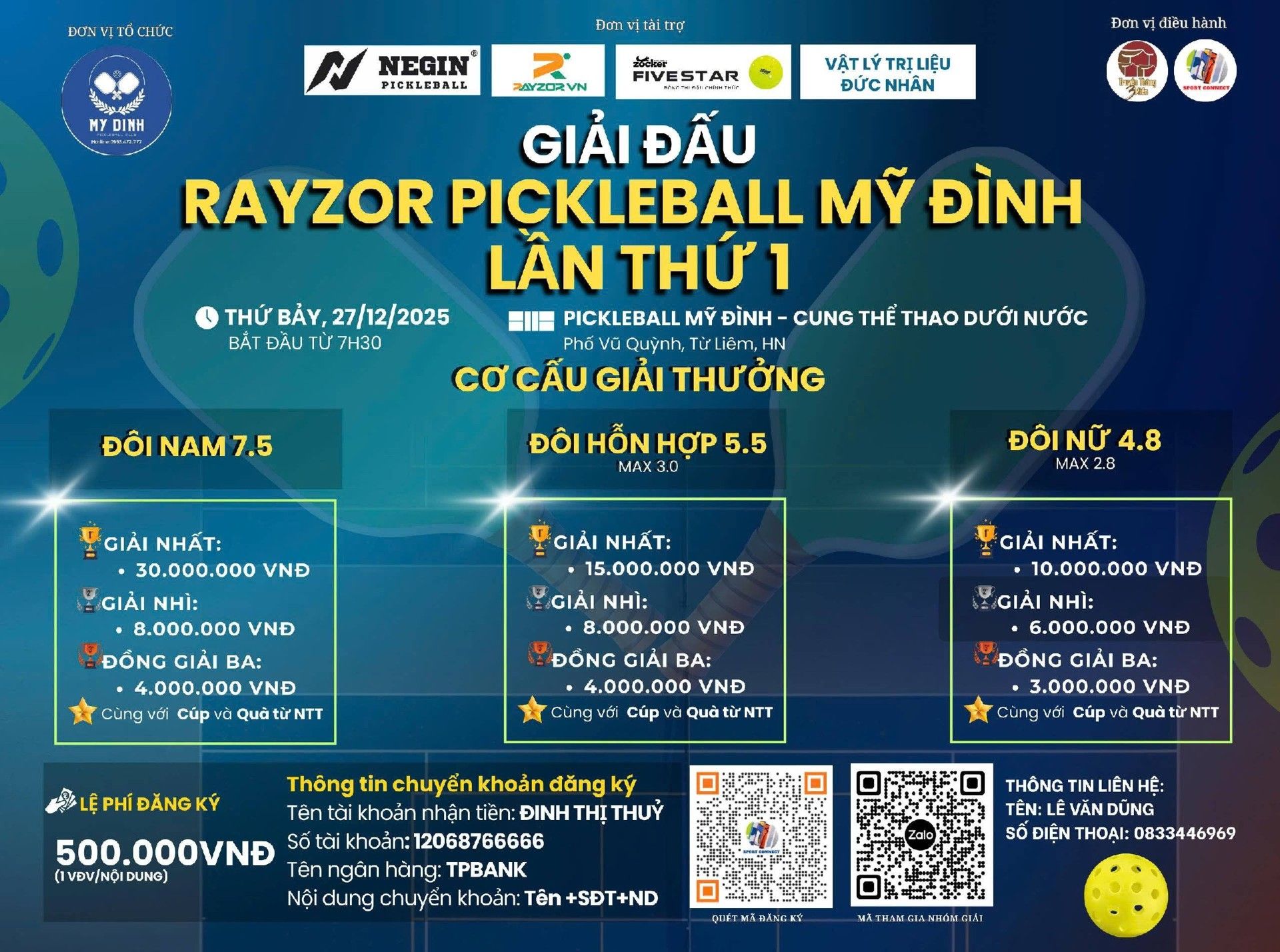 Địa điểm: SÂN PICKLEBALL MỸ ĐÌNH - CUNG THỂ THAO DƯỚI NƯỚC -Phố Vũ Quỳnh- Từ Liêm- HN'