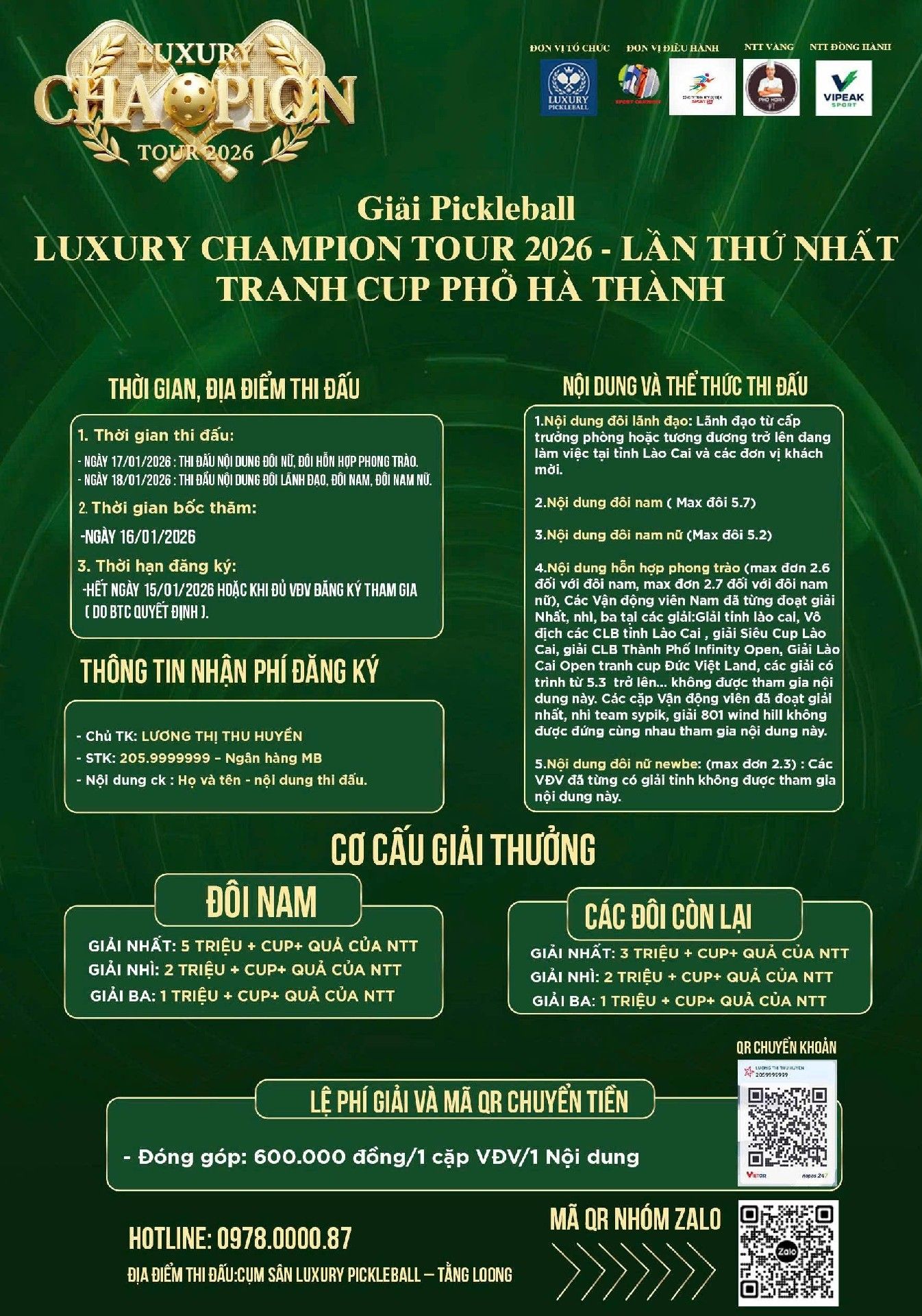 LUXURY CHAMPION TOUR 2026 Lần 1 CUP PHỞ HÀ THÀNH - Đôi Nam Nữ 5.2